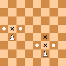 pion se déplace d'une case devant lui, mais capture les autres pièces en diagonale. Son premier mouvement à partir de sa position initiale peut être de deux cases.