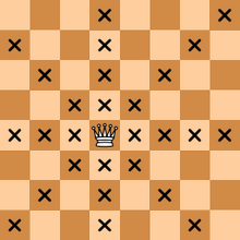 reine peut effectuer à la fois les mouvements de la tour et du fou. Elle est la pièce la plus puissante de l'échiquier.